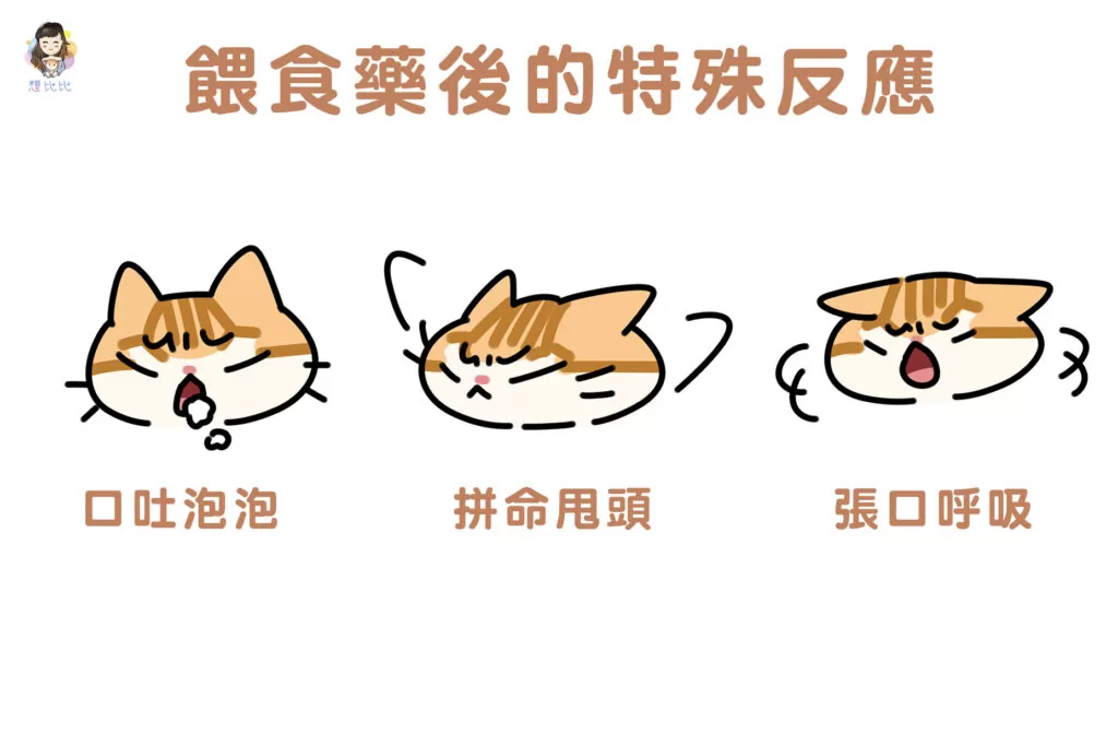 如果膠囊的藥貓咪沒有確實吞進去的話,可能會口吐泡泡的狀況,也有可能貓咪吃到苦味所以會拼命甩頭或者是會張口呼吸!