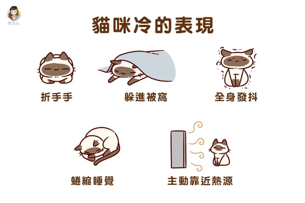 建議可以多觀察貓咪的狀況,或者是摸看看貓咪的體溫及肉球,如果涼涼的就可以採取保暖措施!