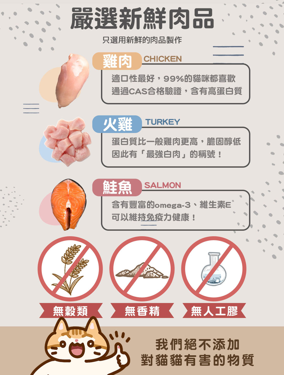 目前組合不含火雞口味(將隨機分配) 不敢嘗試沒關係,讓你少量體驗看看! 貓貓吃過就回不去的美味